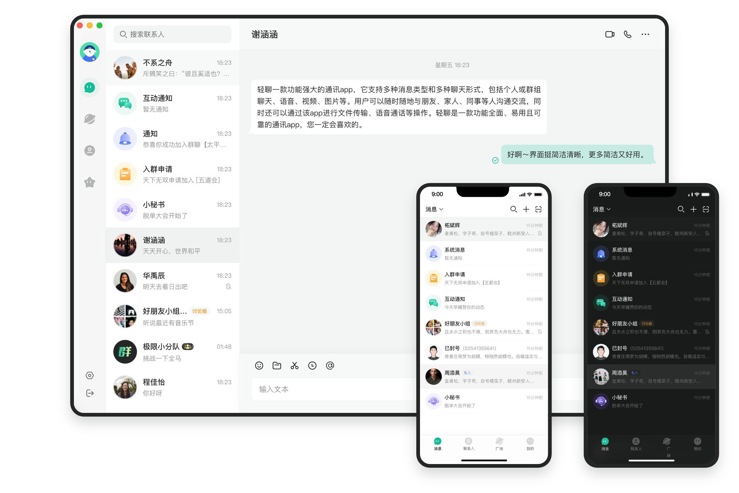 多端同步,无缝切换。包聊客户端同时支持 iOS,Android,Windows,macOS,HarmonyOS 版本